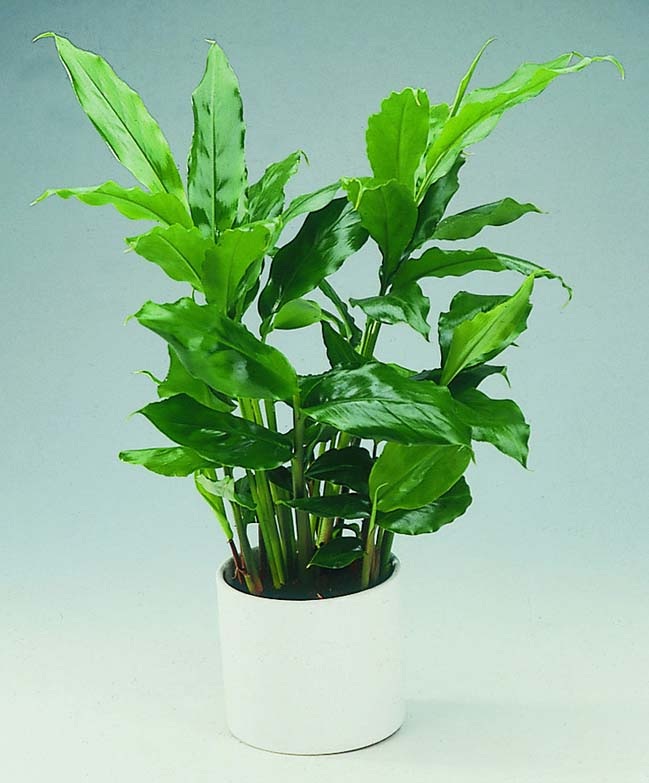 True cardamom (Elettaria cardamomum) is an excellent green plant for dark spaces. In potted plants at home, it remains less than one meter growth. However, it needs plenty of diffuse light, even though it tolerates a surprisingly low light. Height about 65 cm, pot size 12 cm.