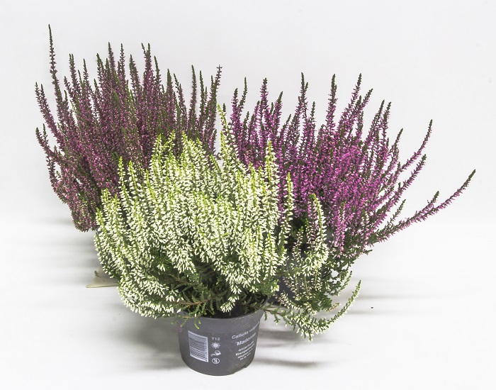 Autumn Callunas in colors: white, pink and red. Height about 30 cm. Pot size 12 cm.