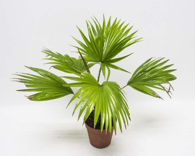 At a young age, the Washingtonia filifera is formed by a sturdy body protected by a thick and tough layer of fiber. The large, almost one-meter-wide fan leaves divide their edges into about 20 finger strips. Withstands moderately high heat even in winter. By mid-summer, the plant can be moved out. Height about 45 cm, pot size 12 cm.