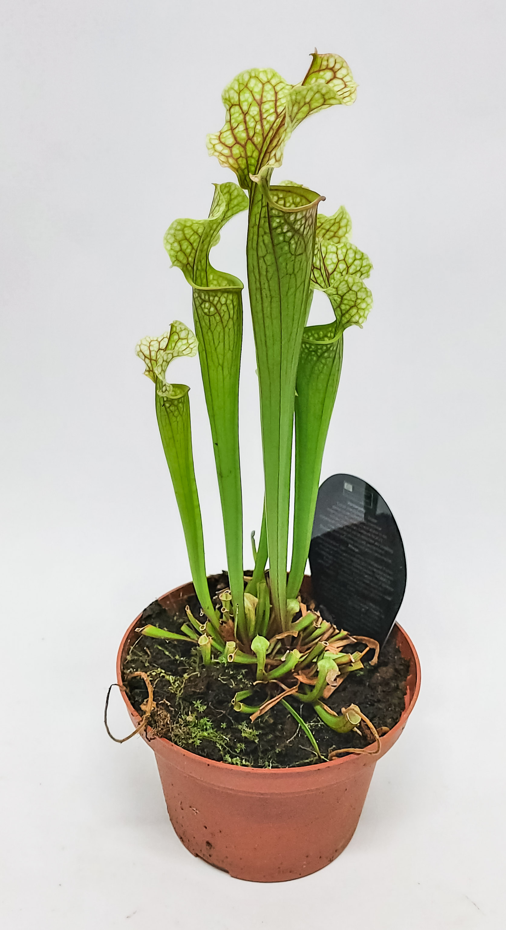 It thrives best when it is watered evenly in a bright place, but not in direct sunlight. Regular spraying helps the plant to thrive. Fertilization is scarce during the growing season. You can also use the Sarracenia in outdoor pots during the summer. Height about 30 cm, pot size 12 cm.