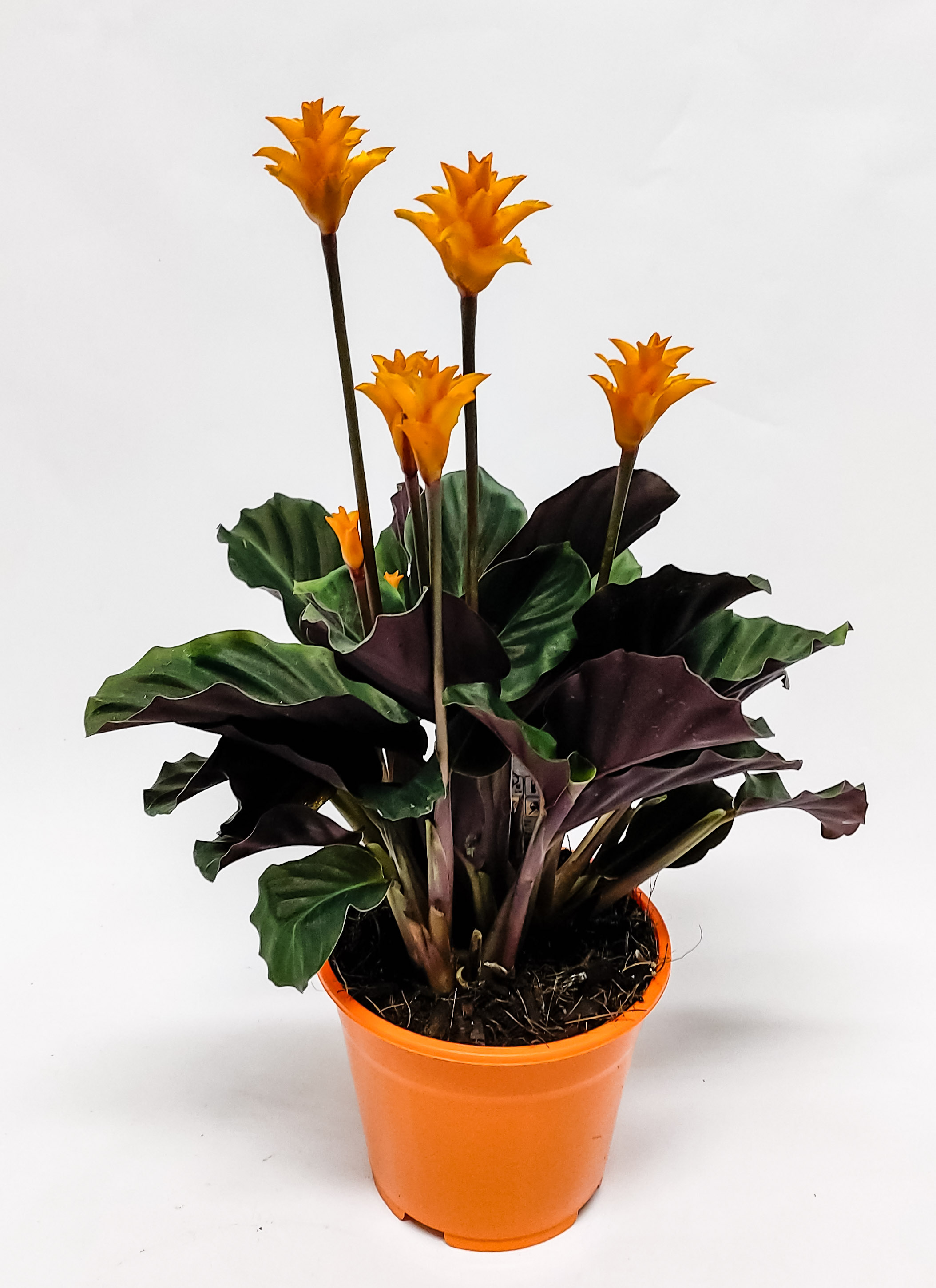 An eye-catching potted plant with bright orange flowers on long stems. The lush, dark leaves have a purple underside. Thrives in light and semi-shade. The soil must be evenly moist but not wet.