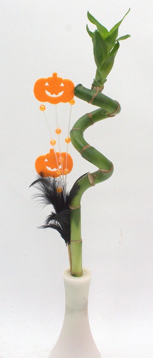 Helppohoitoinen onnenbambu halloween somistuksin. Sisältää vesisuppilon ja jalustan.