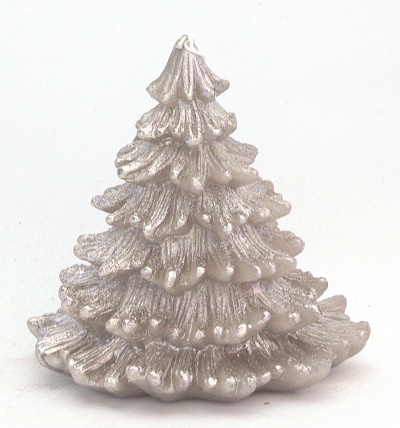 Kuusen muotoiset kynttilät, paloaika n. 20 tuntia. Värit: Tummanharmaa, hopea ja valkoinen.