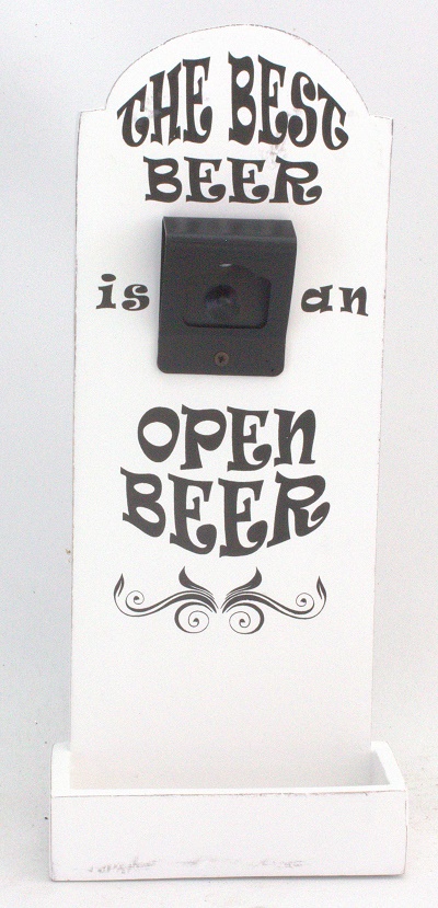 Seinälle kiinnitettävä olutpullon aukaisija tekstillä"kruunukorkille". Koko 30 x 13 cm.