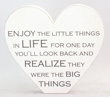 Sydän aiheinen pöytäkoriste tekstillä. Koko: 20 x 22 cm