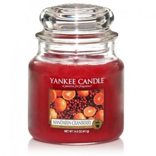 Yankee Candle Mandarin Cranberry – Pirteän hedelmäinen auringon makeuttamien appelsiinien ja kirpeiden karpaloiden tuoksu. Tuoksukynttilä on kauniissa lasipurkissa, ja sen koko on 10,7 x 12,7 cm eli melko kookas. Paloaika 65-90 h! Maksimoi paloaika pitämällä sydänlanka lyhyenä. Kynttilämassa 411 g. Paloaika pienemässä purkissa 25-40 tuntia.