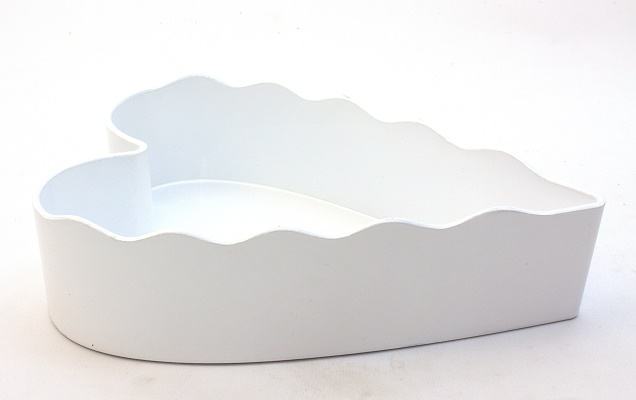 Valkoinen sydän astia, johon voi laittaa esimerkiksi koristetavaroita tai namuja. Mitat: 6 x 22 x 15 cm.