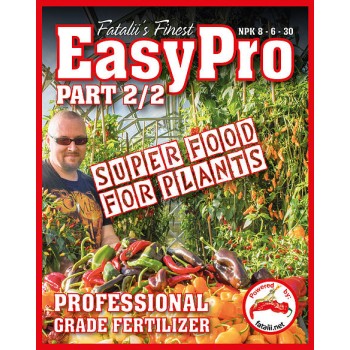 Fatalii’s Finest EasyPro on ammattiviljelijöiden käyttämä 100% veteen liukeneva kastelulannoite, joka on valmistettu puhtaista, ensiluokkaisista kloorivapaista raaka-aineista. Sopii Käytettäväksi vesiviljelyjärjestelmissä sekä multa- ja kookos kasvatuksessa. Fatalii’s Finest EasyPro lannoitteella saavutat erinomaisen kasvun ja mahtavan sadon. Jauhemaisen koostumuksensa ansiosta lannoite on erittäin riittoisaa. Fatalii’s Finest EasyPro lannoite sisältää kaikki kasvien tarvitsemat hivenaineet kasveille helpoiten olevassa muodossa. Sopii myös kasvien lehtiruokintaan. Aina 200 litraan yhdestä paketista Pakkauskoko: 100g