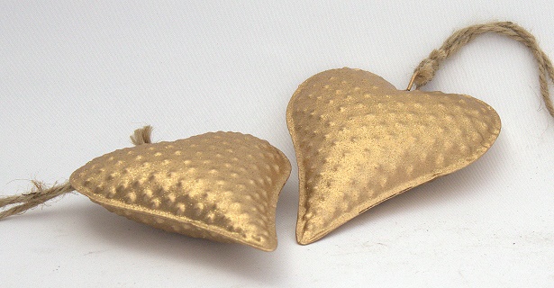 Ripustettava kullanvärinen metallisydän. Hinta/ 1 kpl. Koko 9 x 12 cm, paino noin 0.1 kg.