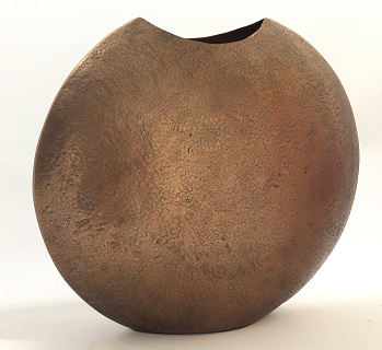 Messinkinen kukkavaasi, korkeus 45 cm, leveys 50 x 15 cm.
