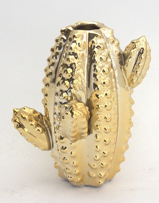 Kullanvärinen kaktusmaljakko. Korkeus 15 cm, leveys 13 cm.