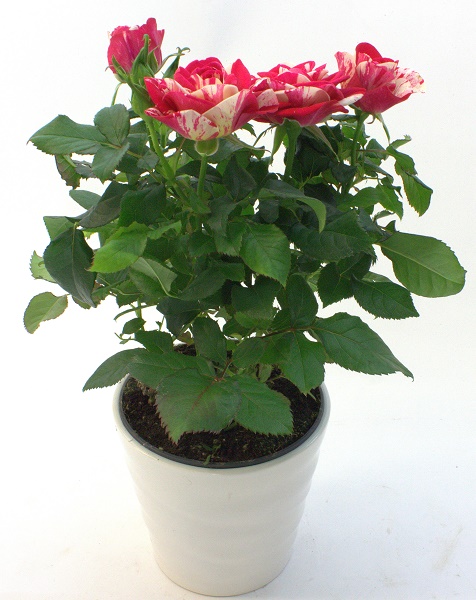 Korkeus noin 34 cm. Värit: punainen, valkoinen ja vaaleanpunainen.