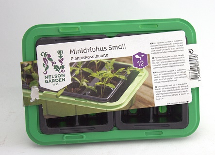 Minikasvihuone, joka sopii myös ikkunalaudalle. Käytetään esikasvatukseen tai koulimiseen. Sisältää 2 syvää ruukkusarjaan kuuden pakkauksessa. Kasvihuoneen ilmastointi toimii kääntämällä kantta puoli kierrosta, jolloin kansi jää korokkeiden varaan.