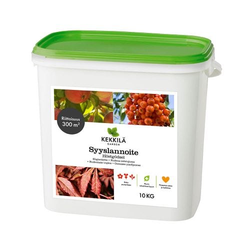 Kekkilä Syyslannoite on kaikille puutarhan kasveille tarkoitettu typetön erikoislannoite. Sen sisältämä fosfori ja kalium auttavat kasvit talven yli ja antavat eväät seuraavan kevään runsaaseen kukintaan. Rakeinen lannoite on helppo levittää, kastelu nopeuttaa lannoitteen imeytymistä maahan kasvien saataville. P-K 5-20