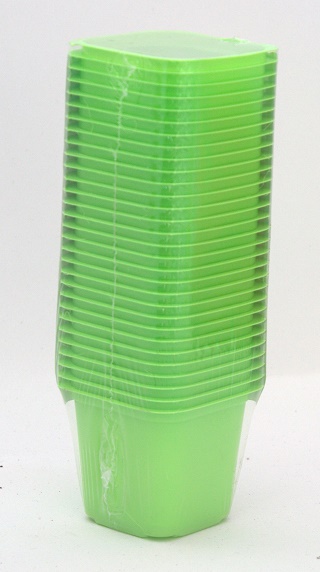 20 neliskulmaista, vihreää muoviruukkua taimien, pistokkaiden esikasvatukseen tai idättämiseen. Koko 6 cm.