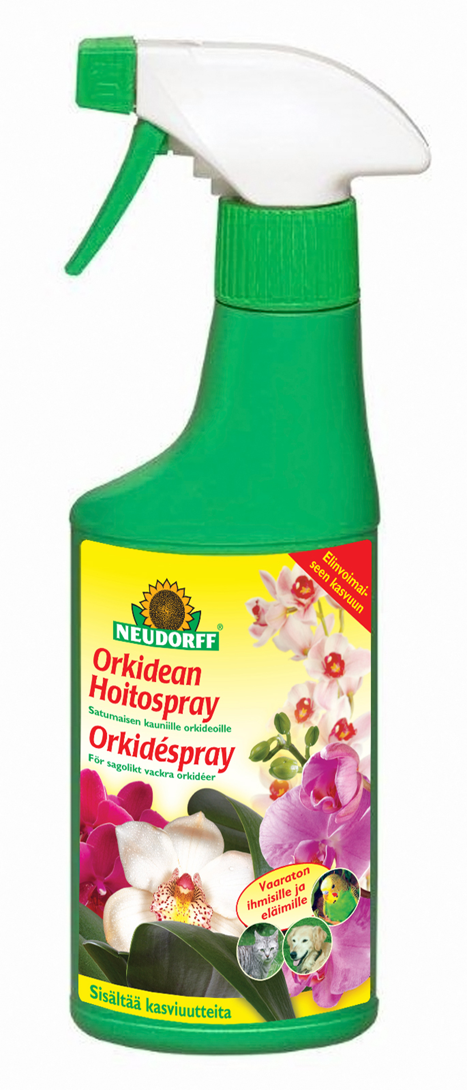 kasviperäisiä aineita ja ureaa käyttämällä valmistettu kasvinhoito-aine edistää elinvoimaista kasvua ja kukkien muodostusta parantaa mikroilmastoa lisäämällä ilmankosteutta ei jätä kalkkiläikkiä lehdille käyttö vaaratonta ihmisille ja eläimille käyttö: Orkideat viihtyvät kosteassa ilmassa. Tämän vuoksi lehtiä tulee ruiskuttaa kasvuvaiheessa 1-2 viikon välein ja lepovaiheessa 2-3 viikon välein sisältö: 250 ml