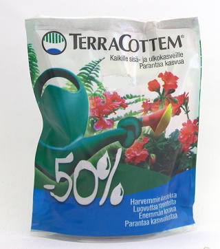 TerraCottem-maanparannusaineen ainutlaatuinen teknologia edistää juuriston kehitystä, aktivoi kasvualustan mikrobitoimintaa ja vähentää kasteluntarvetta jopa 50 %. Tuote sisältää vulkaanista laavakiveä, imukykyisiä polymeerejä, mykorritsaa, ja NPK-ravinteita (4-1-4) sekä hivenaineita. Helppo käyttää ja soveltuu niin kesäkukkaistutuksille, amppeleille kuin myös puille, pensaille ja nurmikentille. Soveltuu myös chilinkasvatukseen.