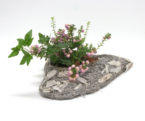 Kaarnasydän istutus sisältää marjakanervaa, murattia ja koristesoraa. Koko: 17 cm x 36 cm x 25 cm.