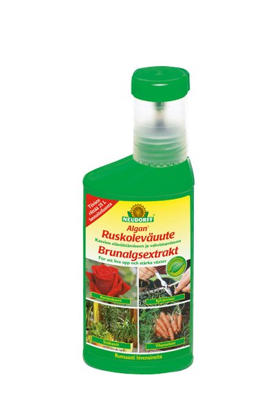 Kasviperäisiä aineita käyttäen valmistettu orgaaninen kaliumlannoite. Ruskoleväuute (Ascophyllum nodosum), biologinen, systeemisesti vaikuttava kasvunedistäjä. Kiihdyttää itämistä ja juurten muodostumista. Nostaa huomattavasti ja laatua parantavasti marjojen, viiniköynnöksien ja hedelmäpuiden satoa. Parantaa laatua ja varastoitavuutta. Sisältää monia tärkeitä hivenaineita, vitamiineja, hormoneja, entsyymejä, aminohappoja ja proteiineja. Sopii kaikille viljelykasveille. Käyttö: Tehoaa parhaiten 1-prosenttisena (10 ml 1 litraan vettä) lehdille suihkutettuna. Voidaan antaa myös kastelemalla. 4 käyttökertaa vuodessa. sisältö: 250 ml