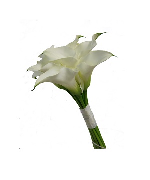Selkeä ja suoraviivainen morsiuskimppu calloista. Korkeus alkaen 50 cm