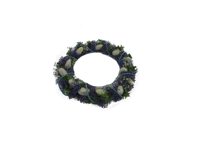 Kevyt kranssi kastemaljan ympärille, halkaisija 20 cm.