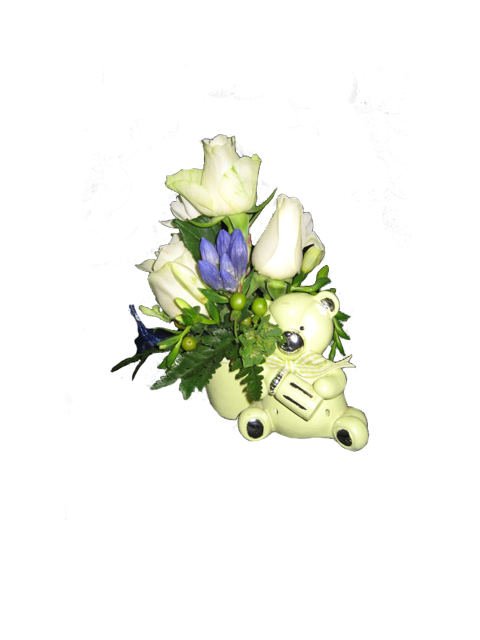 Astiaan sidottu kukka-asetelma.
