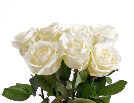 Kimppu pitkistä valkoisista Premium ruusuista. Vaihtoehtoina 10 tai 20 ruusua.