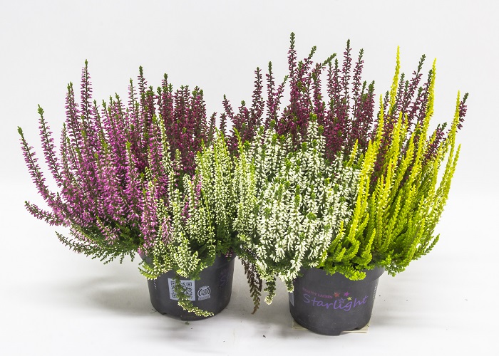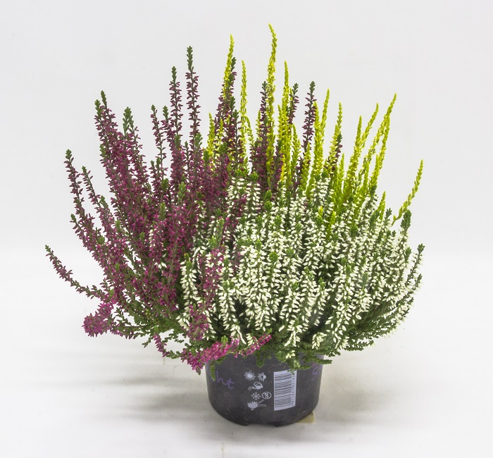 Syksyiset Callunat kolmivärisinä. Korkeus noin 25 cm. Ruukun koko 13 cm.