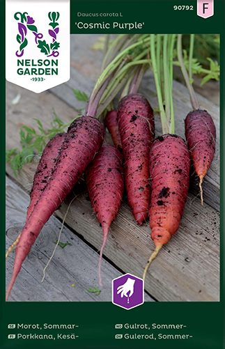 Herkullisen näköinen porkkana, jonka oranssia hedelmälihaa ympäröi liila kuori. Rapea ja hyvä poimittavaksi suuhun suoraan maasta. Voidaan myös ryöpätä ja pakastaa. Viihtyy kivettömässä, runsasmultaisessa ja läpäisevässä maassa. Kastele kuivalla. Harvenna ja poista rikkaruohot pienten taimien ympäriltä. Suorakylvö: Aikaisin, heti kun maa muokattavissa, kesäkuun loppuun. Kastele vako ennen kylvöä. Pidä kylvös kosteana. Itämisaika 2-4 vkoa. Peitä kasvuharsolla, itäminen nopeutuu. Torjuu samalla tuhohyönteiset. Pidä harson alla sadonkorjuuseen.