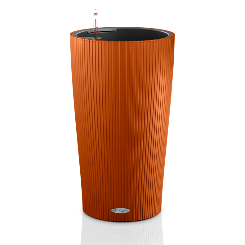 Moderni ja elegantti ruukku, jossa hienostunut pystyraidoitus. Sisältää erillisen irrotettavan sisäruukun ja altakastelujärjestelmän, joka takaa kasvin tasaisen vedensaannin jopa 12 viikon ajan. Altakastelu sopii kasveille, jotka tarvitsevat paljon vettä, sekä myös kasveille, joiden vedentarve on huomattavasti vähäisempi, kuten mehikasveille. Saksalaisen Lechuzan ruukut ovat kuuluisia kestävyydestään ja modernista, kauniista mallistostaan. Lechuza-ruukut ovat iskun, pakkasen ja UV-säteiden kestäviä ja keveitä liikutella. Ne ovat saaneet useita Red Dot -designpalkintoja. Siksi ne ovatkin erityisesti sisustussuunnittelijoiden ja viheralan ammattilaisten suosiossa. Materiaali: ikimuovi Koko: halkaisija 23 cm ja korkeus 41 cm.