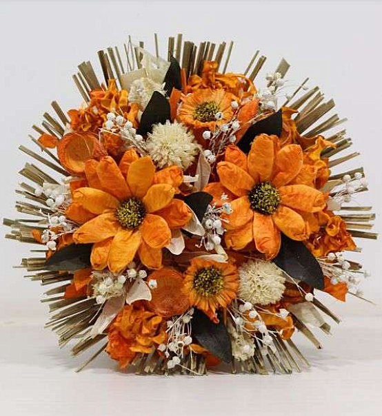 Kuvankaltainen trendikäs kuivakukkakimppu. Korkeus n. 27 cm, halkaisija 30 cm.