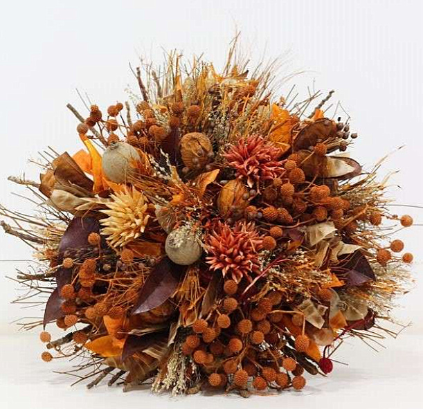 Kuvankaltainen trendikäs kuivakukkakimppu. Korkeus n. 27 cm, halkaisija 30 cm.