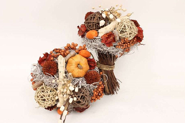 Kuvankaltainen trendikäs kuivakukkakimppu. Korkeus n. 27 cm, halkaisija 22 cm.