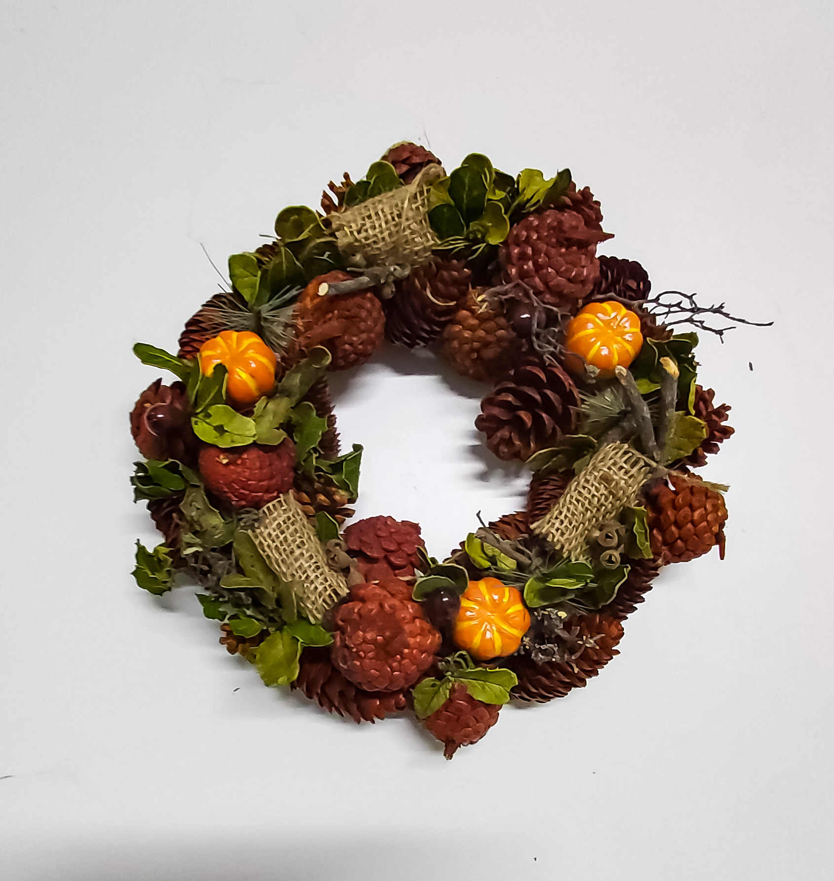 Kuvan kaltainen kranssi. Halkaisija 30 cm, paksuus 8 cm.