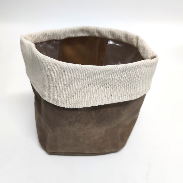 Ruskea nahka pussi. Koot 15.5 x 15 ja 17 x 23.5 cm.