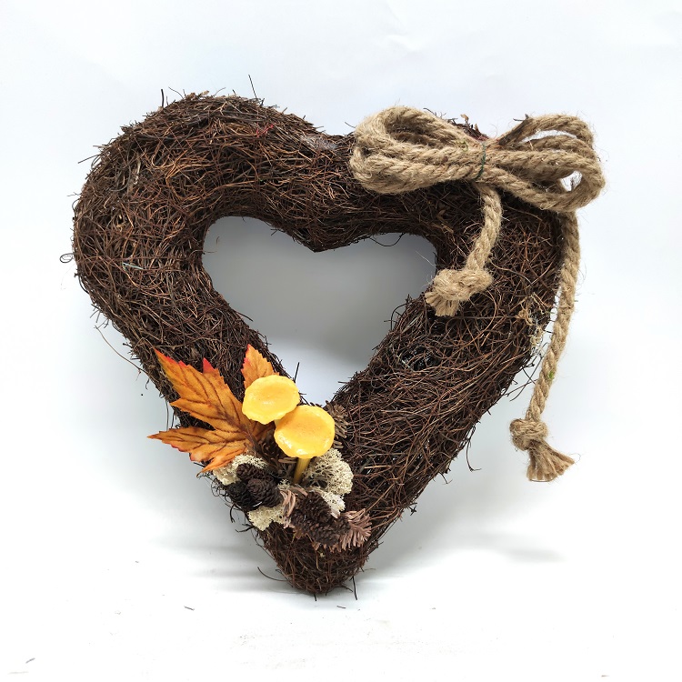 Puinen sydänkranssi. Korkeus 30 cm, leveys 29 cm ja paksuus 8,5 cm.