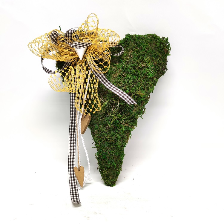 Sammal sydänkranssi sydän koristeilla. Korkeus 34 cm, leveys 24 cm ja paksuus 5 cm.
