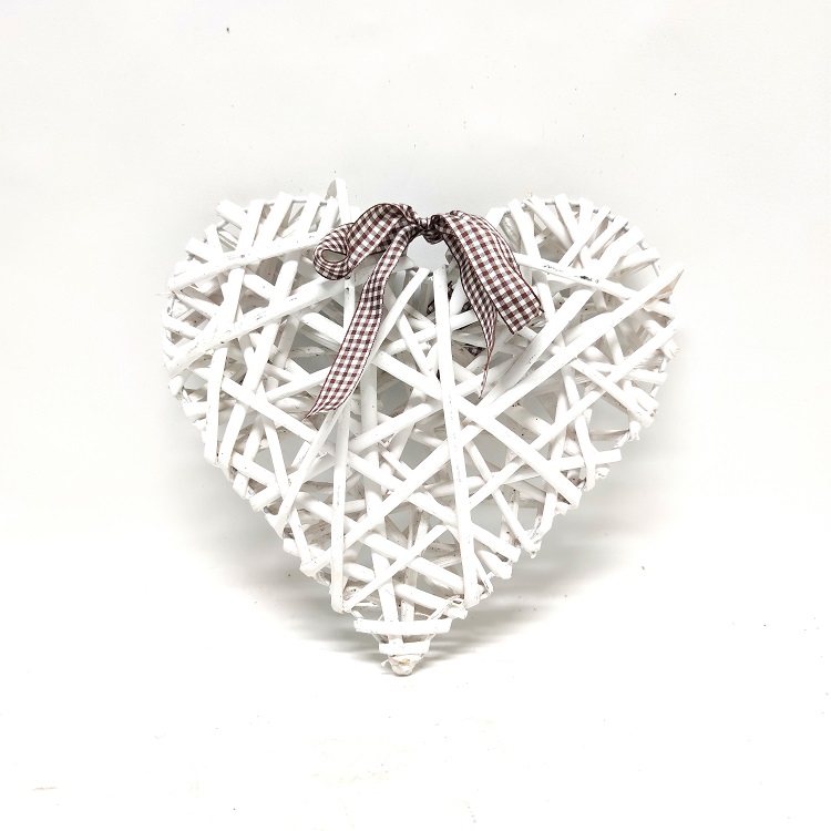 Puinen sydänkranssi ruutu rusetilla. Korkeus 22 cm, leveys 19 cm ja paksuus 6 cm.