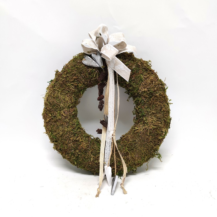 Sammal kranssi käpy ja sydän koristeilla
