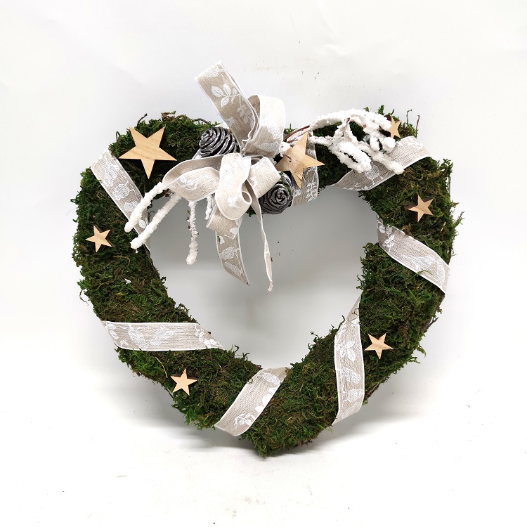 Sammal sydänkranssi puisilla tähdillä