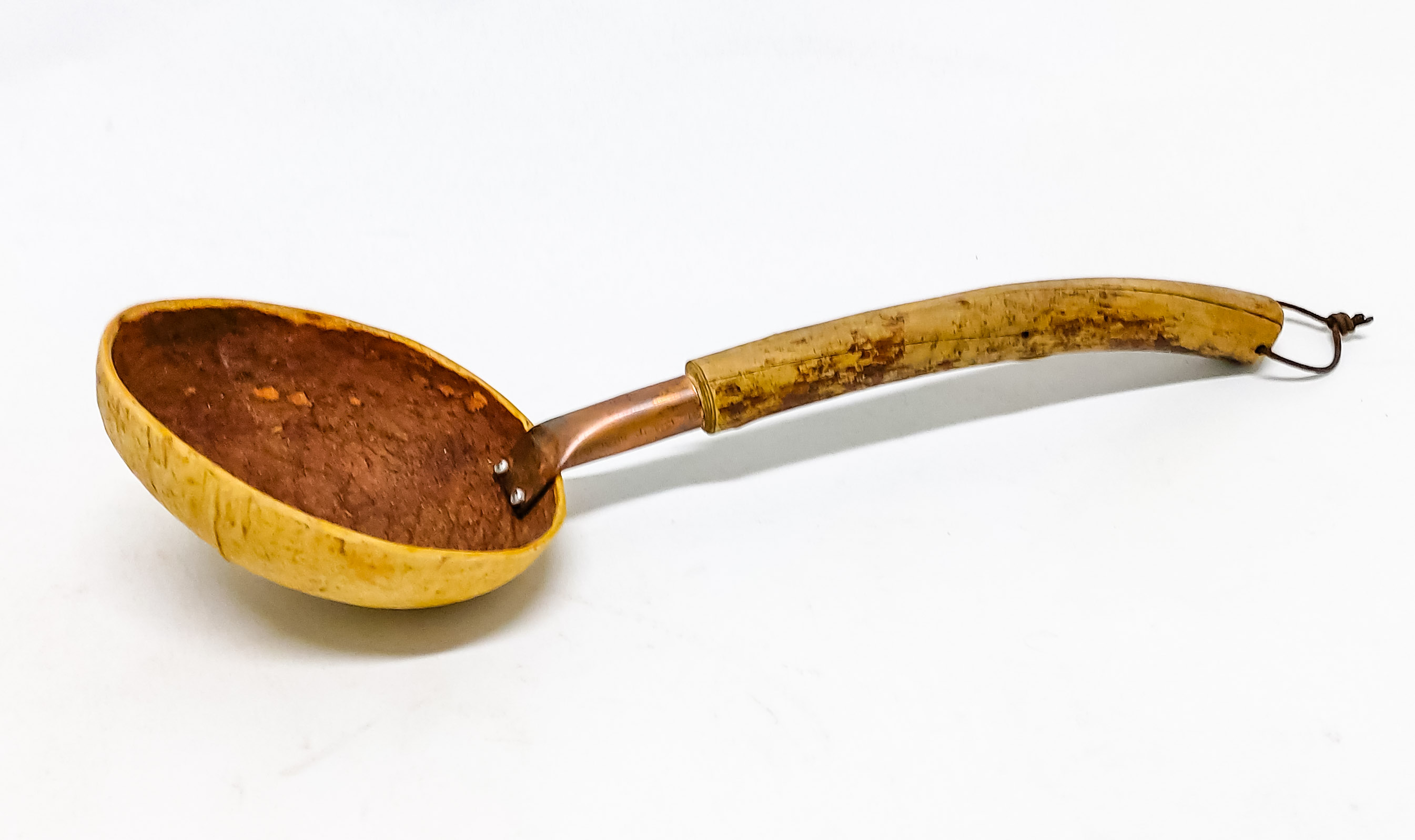 Puinen käsintehty hieno löylykauha. Pituus 33 cm, kauhan halkaisija noin 10 cm.