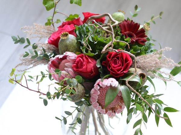 Kuvanmukainen kaunis ja kestävä kukkakimppu tuoreista kauden kukista.