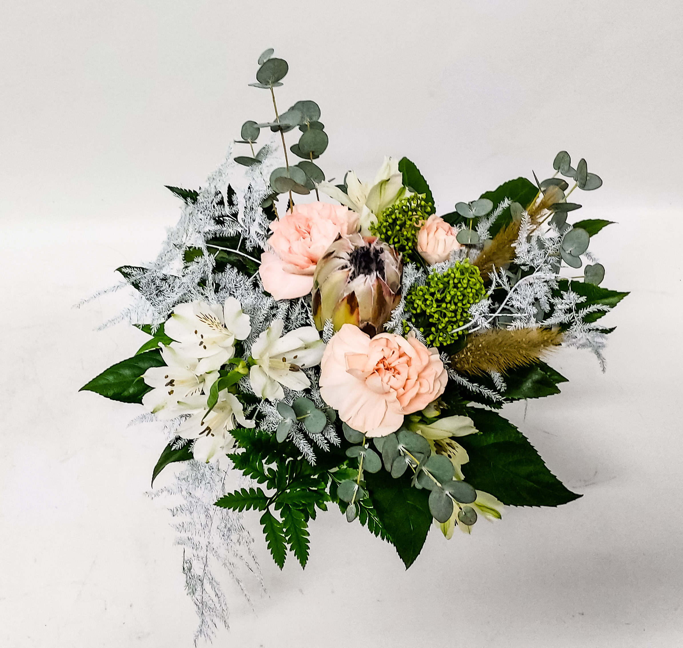 Kuvan mukainen hempeä kukkakimppu kauden kukkasista.