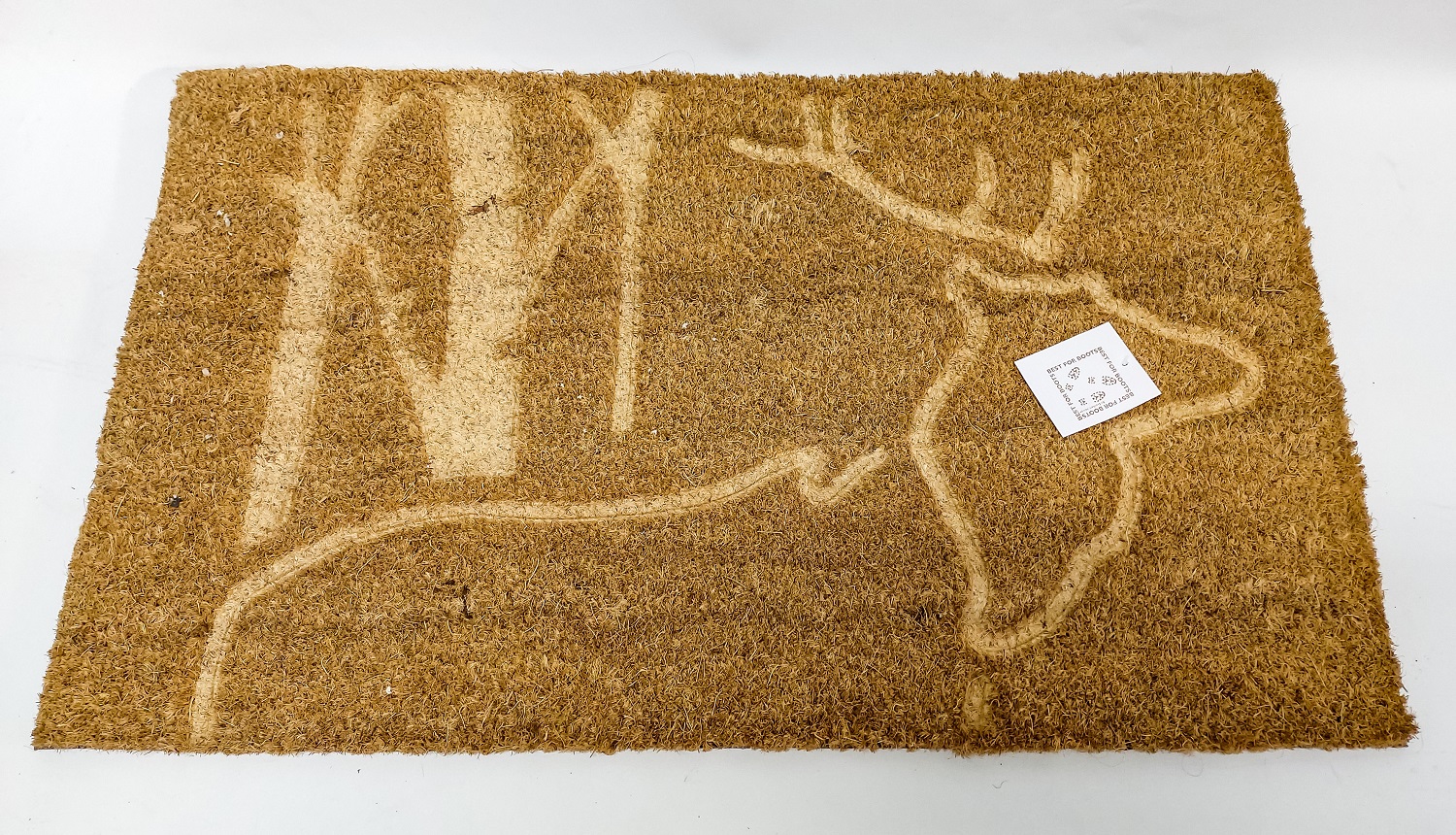Hieno ovimatto painatuksella, jossa materiaalina kookos. PVC-muovia pohjassa. Koko 45 x 75 cm.