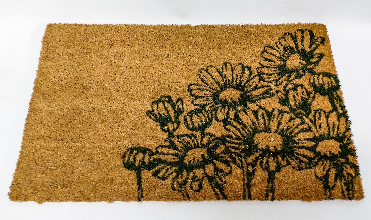 Hieno ovimatto painatuksella, jossa materiaalina kookos. PVC-muovia pohjassa. Koko 45 x 75 cm.