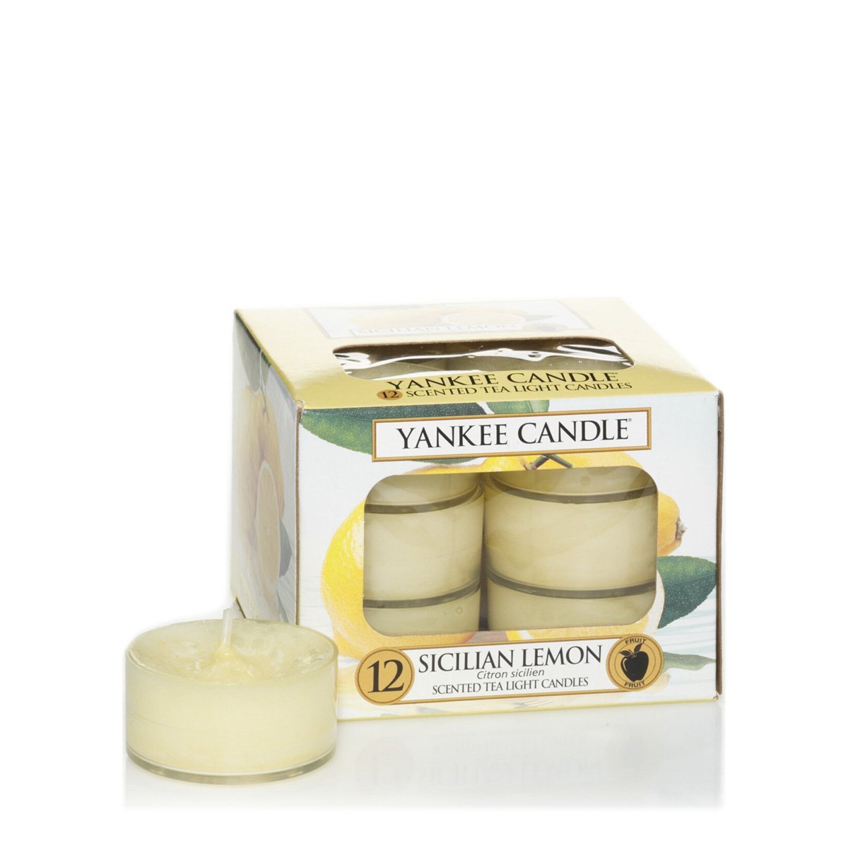 Yankee Candle Sicilian Lemon - Kirkas ja aurinkoinen sitruuna ... täydellisen kypsä, luonnollisen makea ja virkistävä tuoksu. Sisilialaisen sitruunan loiste on lämmin kuin loma Välimeren kesässä. Todentuntuinen tuoksu. Virallinen Yankee Candle -tuote. Tuoksukynttilän paloaika on 4-6 tuntia. Sisältää 12 tuoksukynttillää.