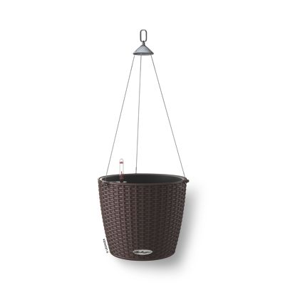 Ruukku on erittäin kevyt ja kestävä. Se sopii sekä ulko- että sisäkäyttään ja kestää hyvin myös pakkasta, aurinkoa ja hieman kovempaakin käsittelyä. Lechuza onkin viherammattilaisten suosima ruukkusarja. Pohjatulppa on hyvä irrottaa ylimääräisen veden poisvalumiseksi, jos amppeli tulee ulos. Mitat: halkaisija 27cm, korkeus 23cm Multatila on 6 litraa, vesisäiliön tilavuus 1,9 litraa. Materiaali korkeaalaatuista muovia ja suojaruukun pinnassa on napakka polyrottinkipunos, jossa pöly ei heti näy.