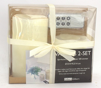 Sisältää kaksi LED-vahakynttilää ja kaukosäätimen.