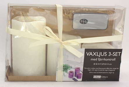 Sisältää 3 LED-vahakynttilää ja kaukosäätimen.